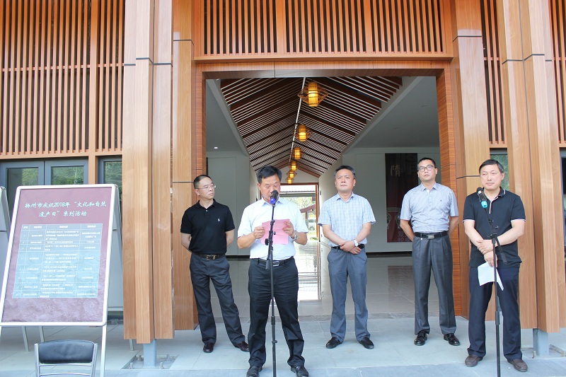 6月8日下午,揚(yáng)州市2018年“文化和自然遺產(chǎn)日”系列活動(dòng)在我公司建設(shè)并裝潢的隋煬社區(qū)公園展示館開啟。文物局局長華德榮,副局長徐國兵,西區(qū)新城管委會(huì)副主任曹波、西區(qū)新城規(guī)劃建設(shè)局局長汪文出席開啟儀式,我公司副總經(jīng)理任光祥參加并發(fā)言。