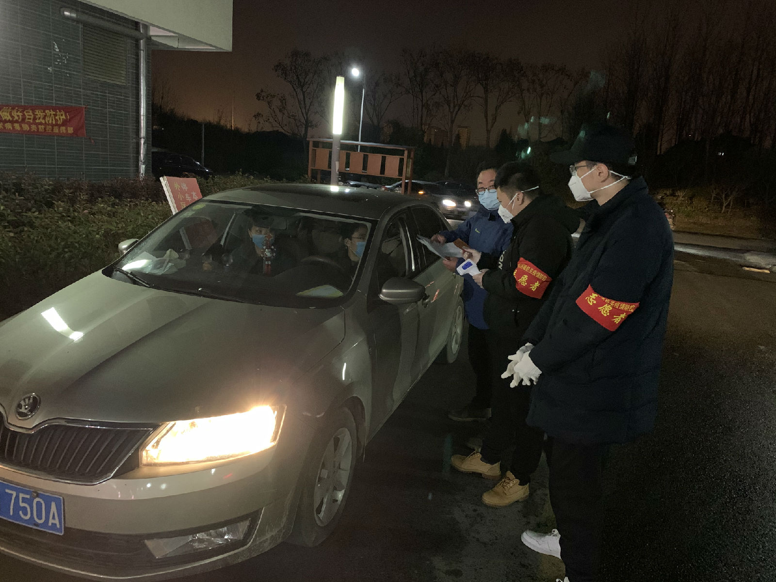 (對出入小區(qū)的車輛進行人員體溫監(jiān)測和信息核實) |